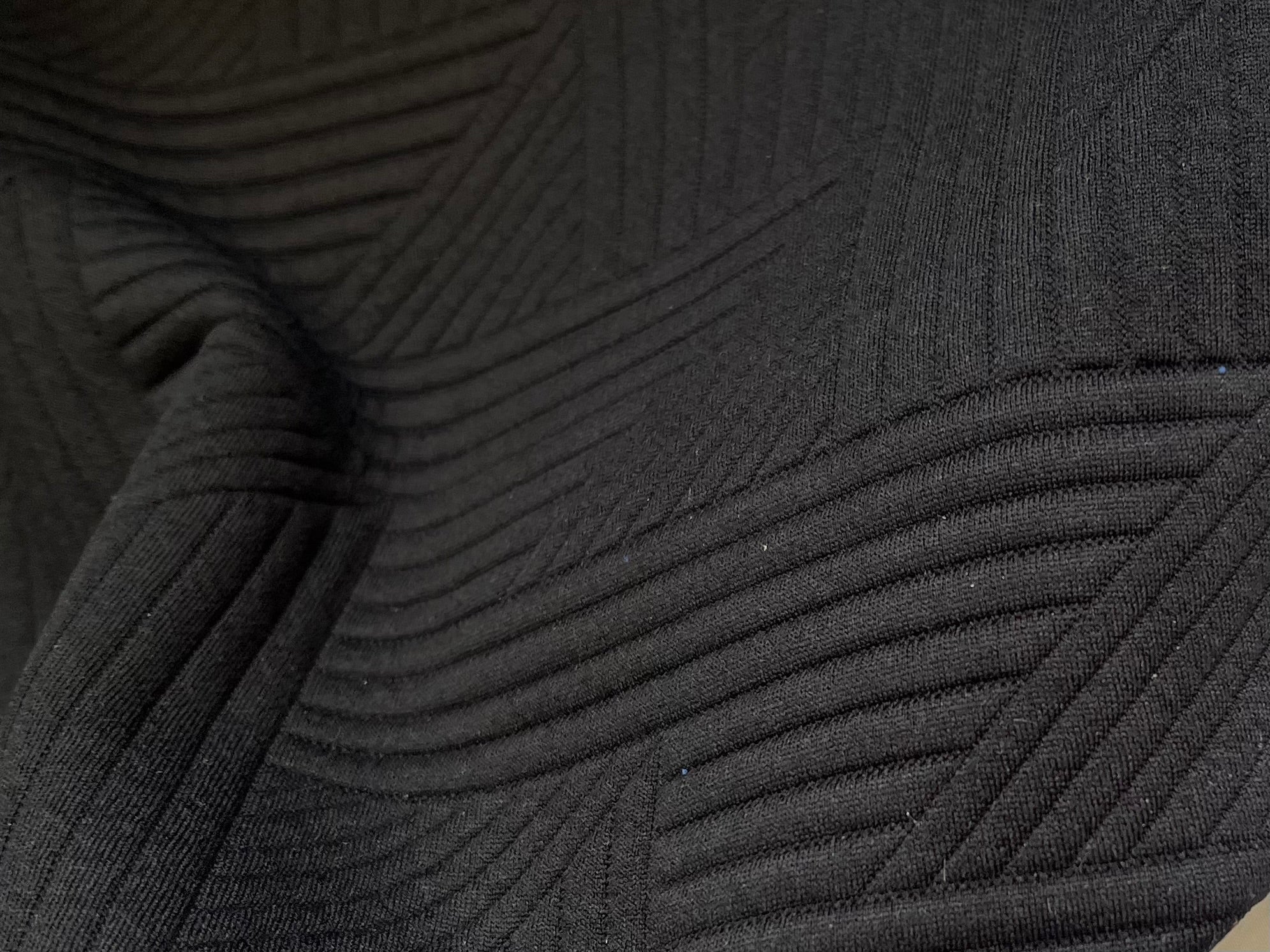 Black Textured Geometric Cable Knit 93% Polyester 5% Rayon 2% Spandex