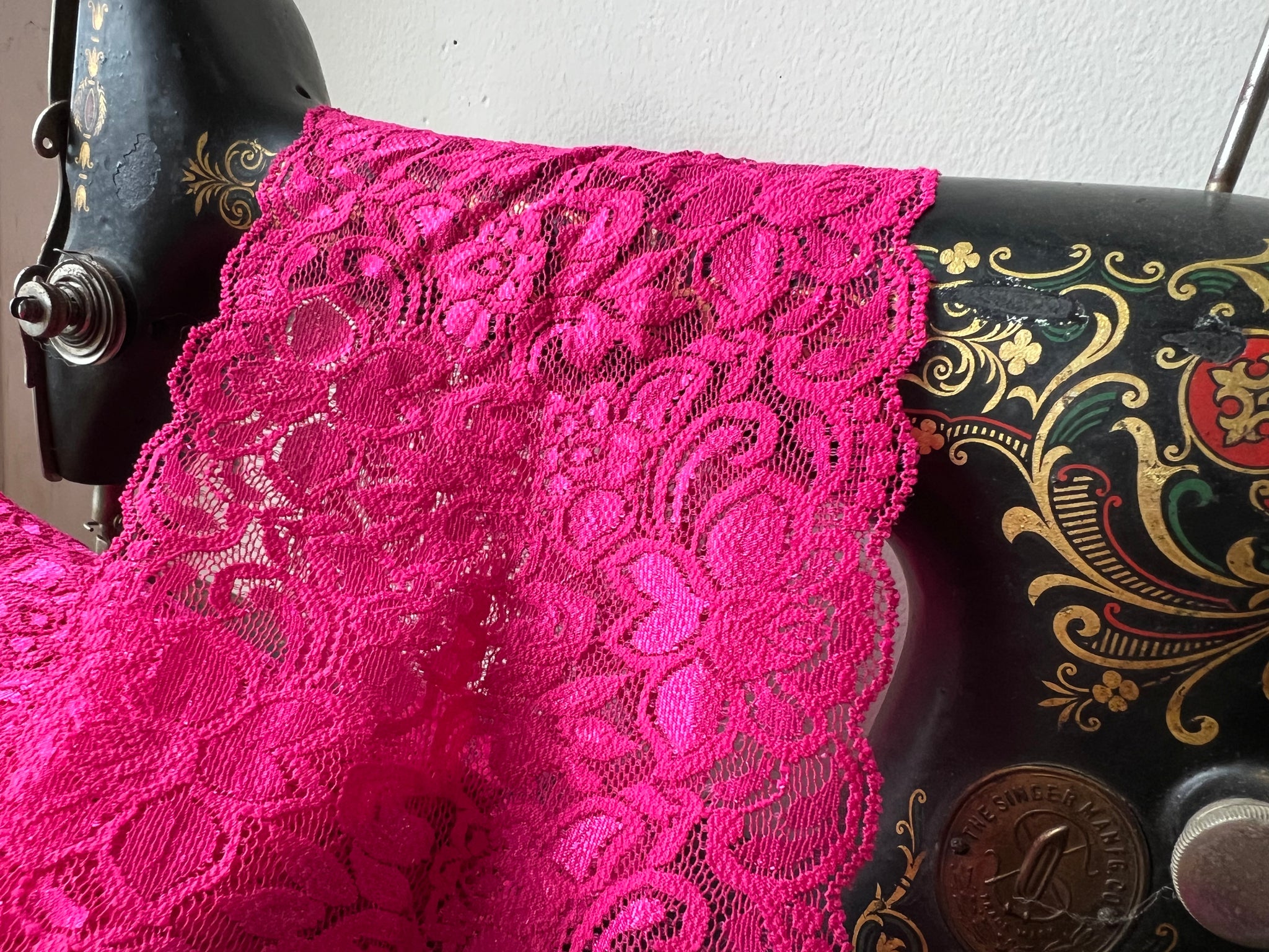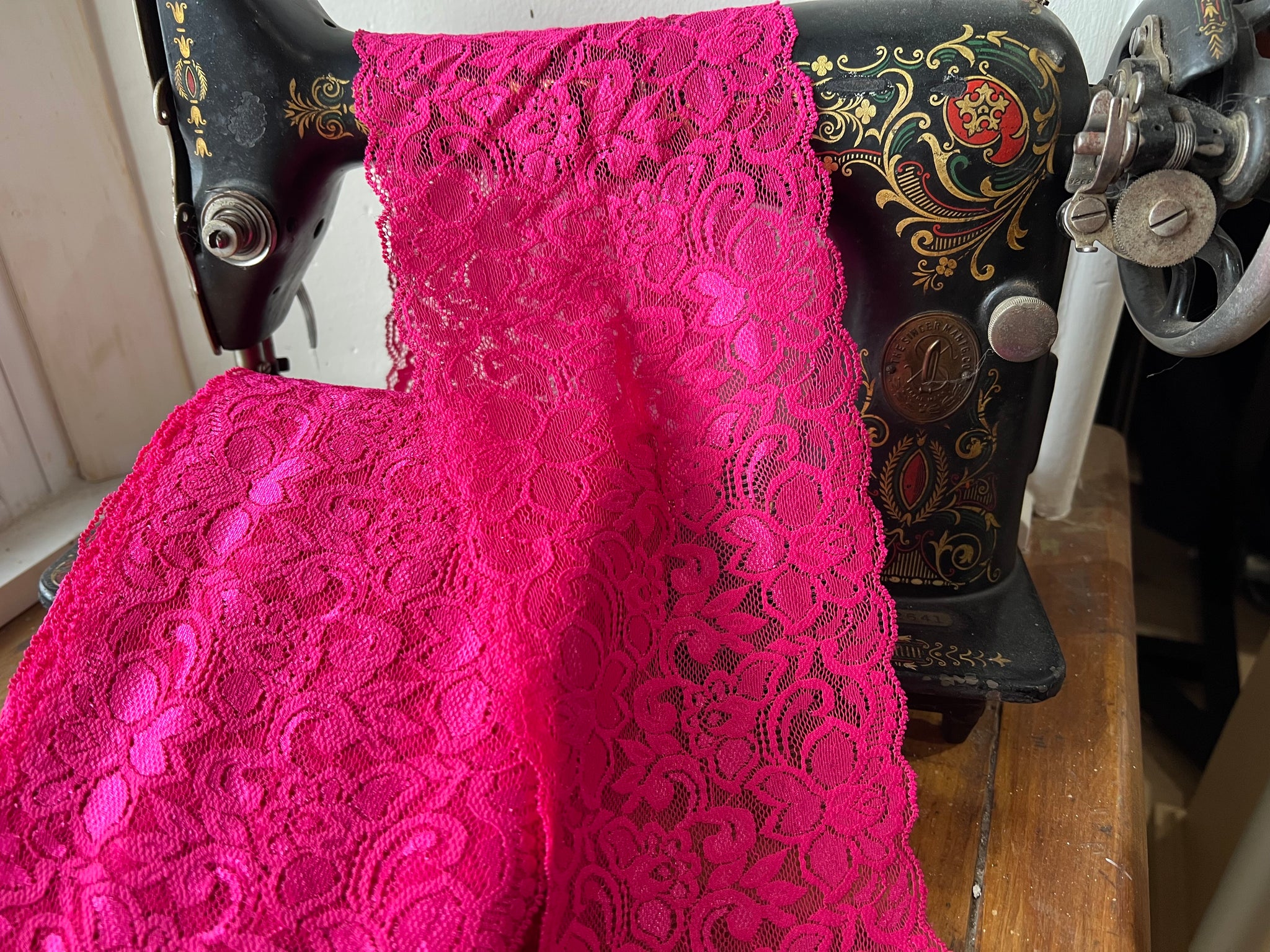 Fuchsia Double Scalloped Lingerie Lace - Nylon & Spandex. 1 Metre Price