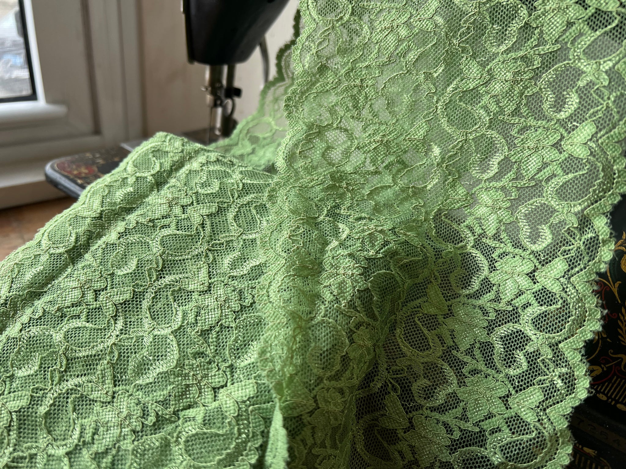This Five & a Half Inch Gold Stretch Lace features a beautiful Gold floral design on a vibrant gold background.