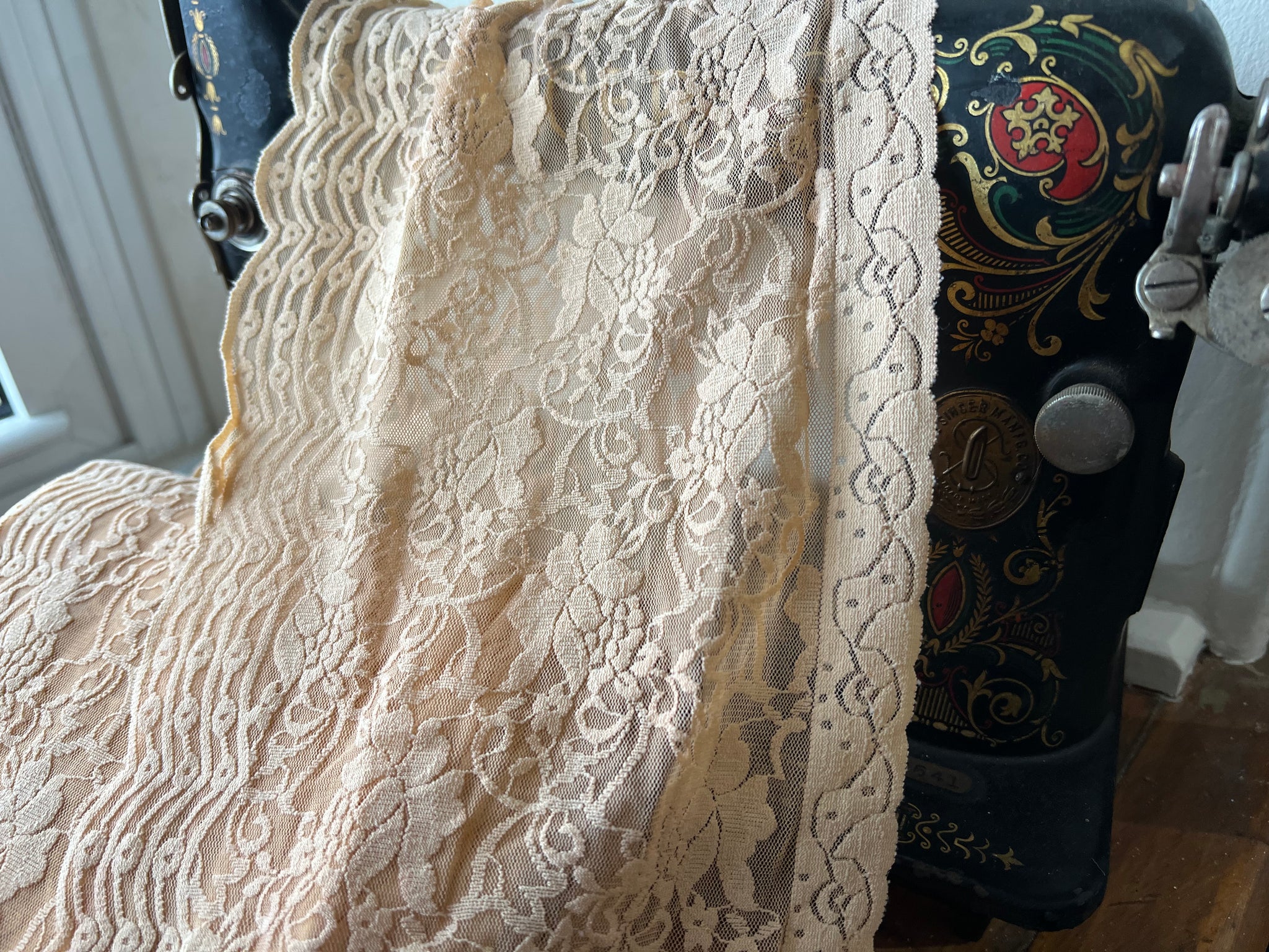 This Eight & a Half Inch Gold Ecru Stretch Lace features a beautiful Floral design on a vibrant Gold Ecru background.