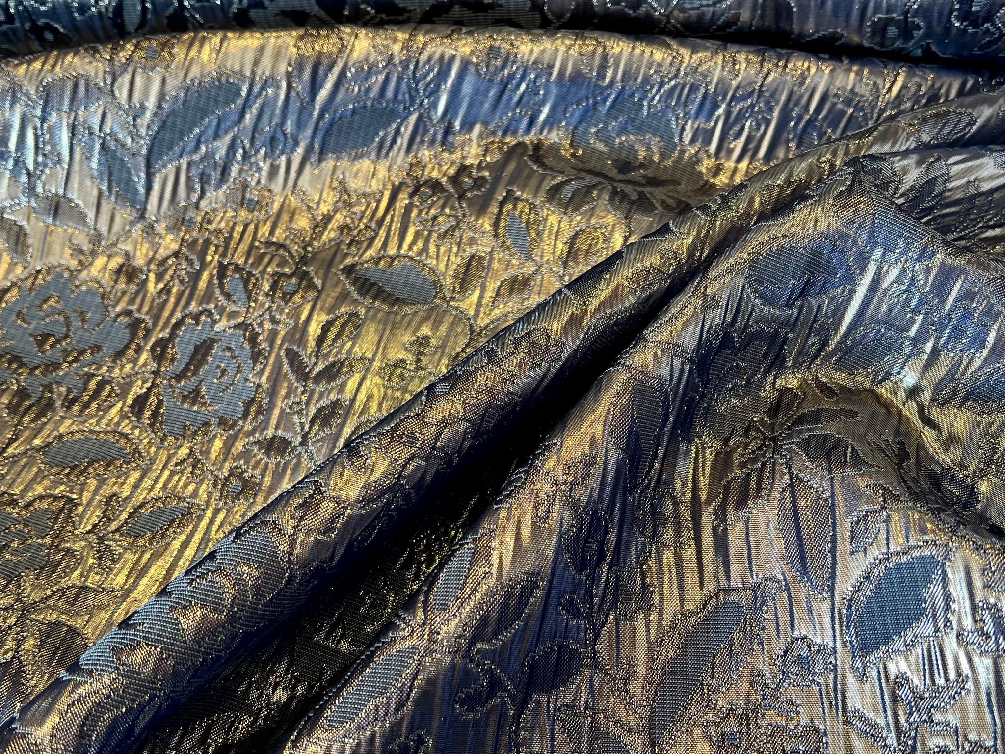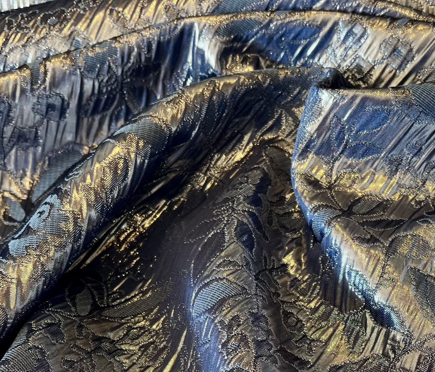 Steel Blue & Silver Floral Matelasse.   1/4 Metre Price