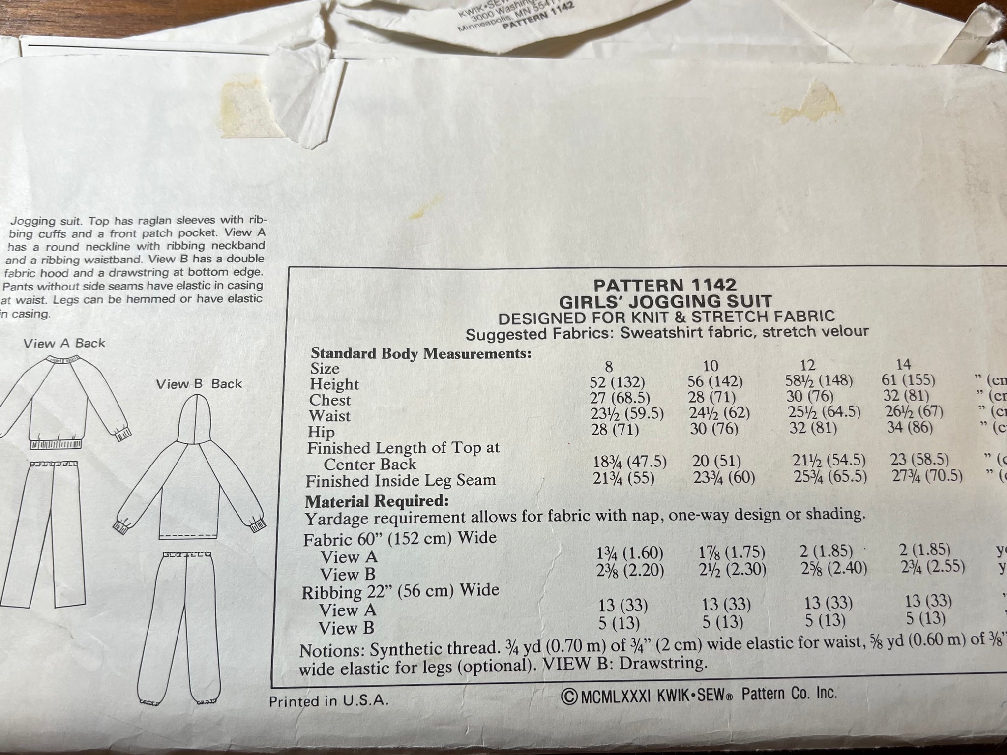 Kwik Sew Pattern #1142 Size 8-14