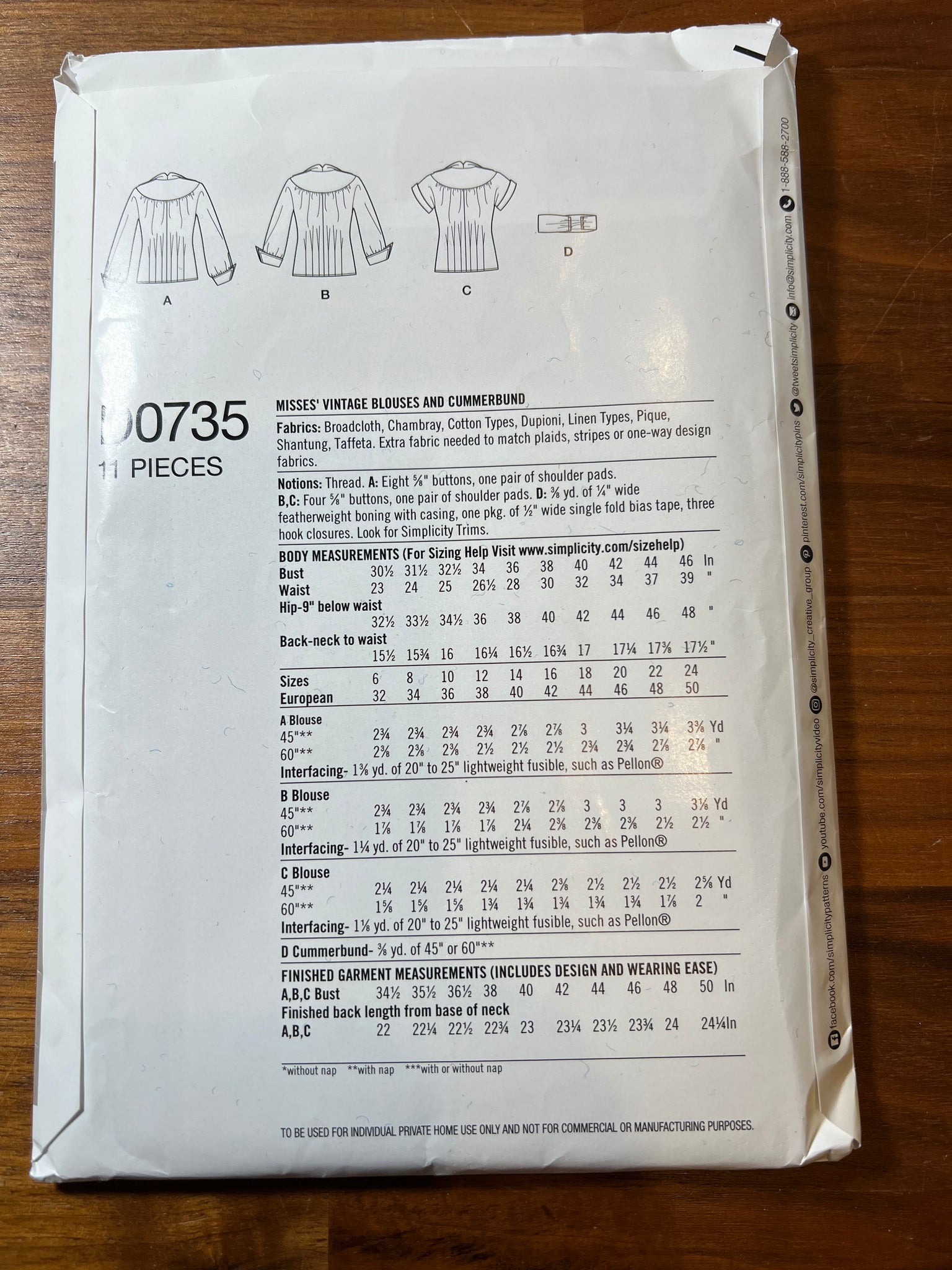 Simplicity Pattern #D0735 Size 16-24