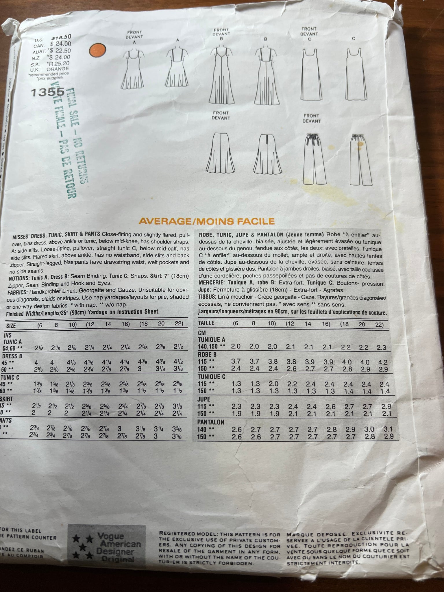 The pattern is uncut and includes sizes 6,8, and 10, for adult females. Made in the United States, this pattern captures the timeless elegance and style synonymous with Donna Karan's designs.