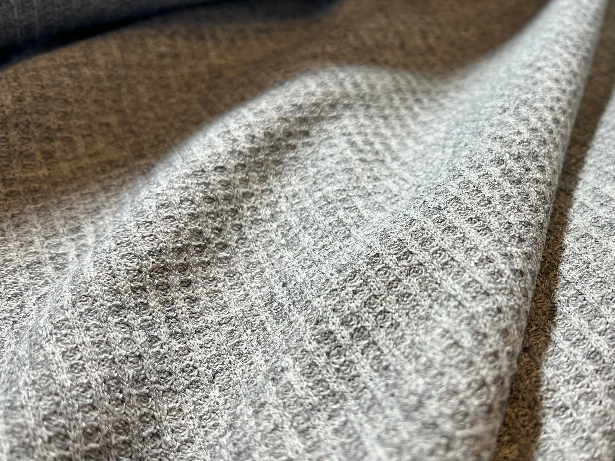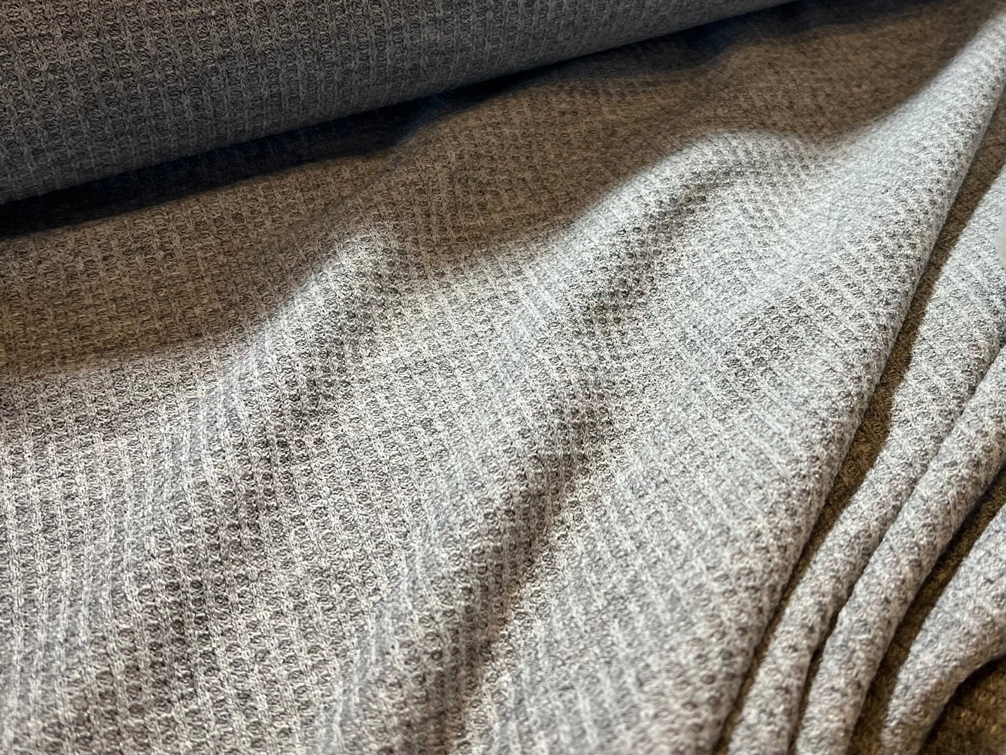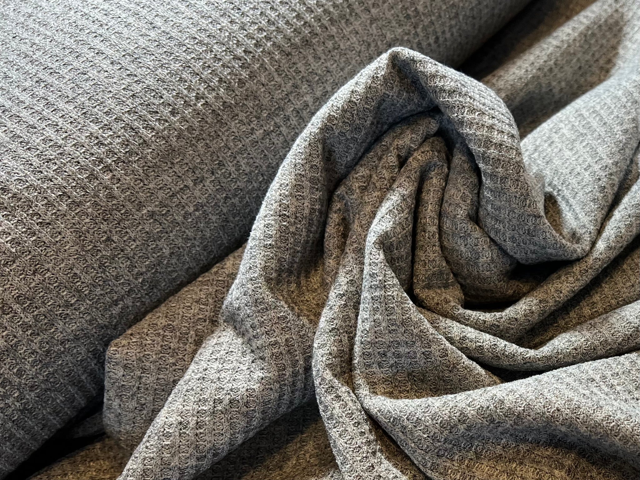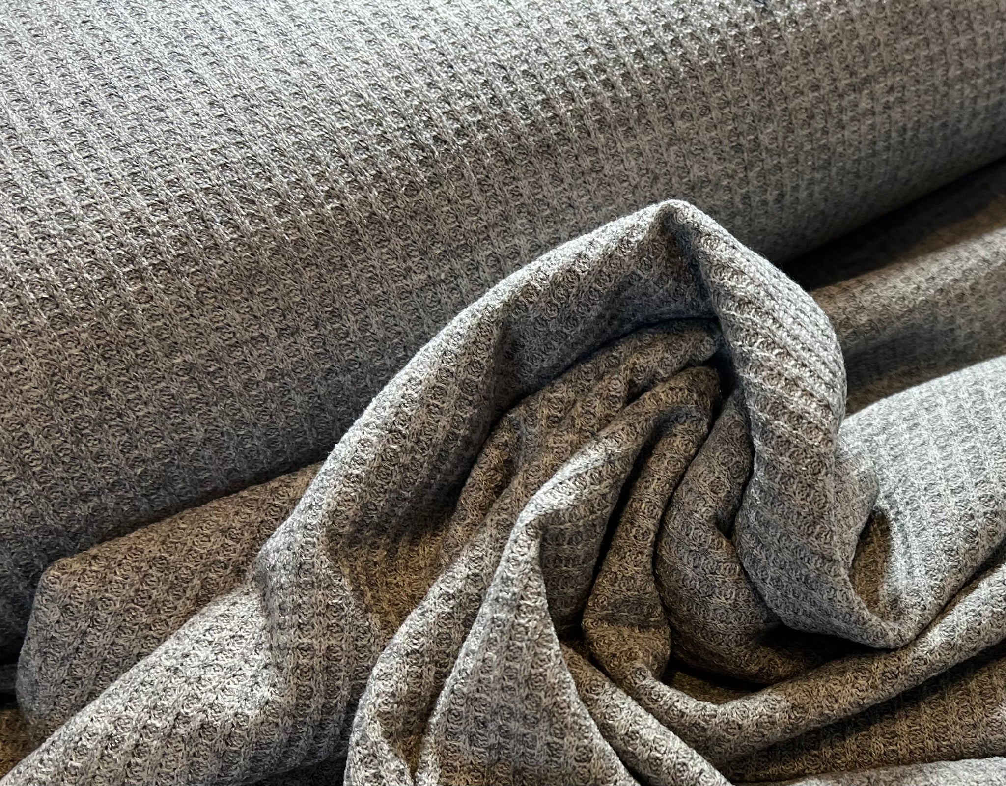 This Waffle Knit fabric is perfect for making casual clothing such as tops, dresses, loungewear, and activewear, as well as accessories like headbands and scarves. Because of its weight and one way stretch, you could also make pajamas or Bath robes